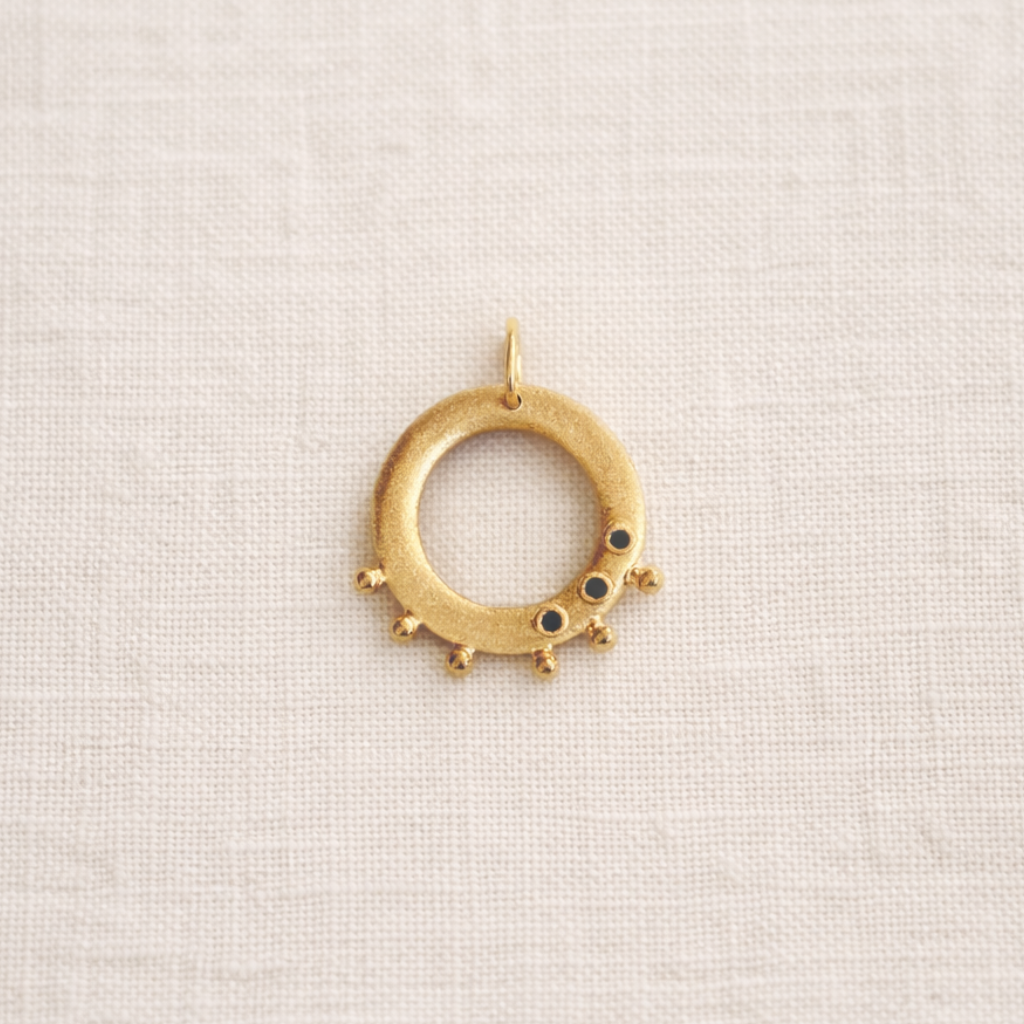 Dimensiones: 2,2 cm diametro.Material: Bronce, baño en oro de 24k, resinas de colores.