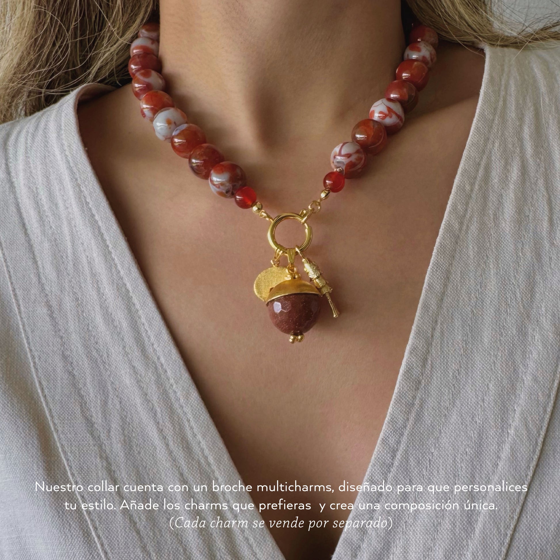 Un homenaje a la fuerza interior y los nuevos comienzos. Esta cadena de ágatas en tonos terracota irradia calidez y energía, conectándote con la tierra y tu centro. Las ágatas terracota son piedras de estabilidad emocional, coraje y equilibrio: ideales para protegerte mientras avanzas con propósito.