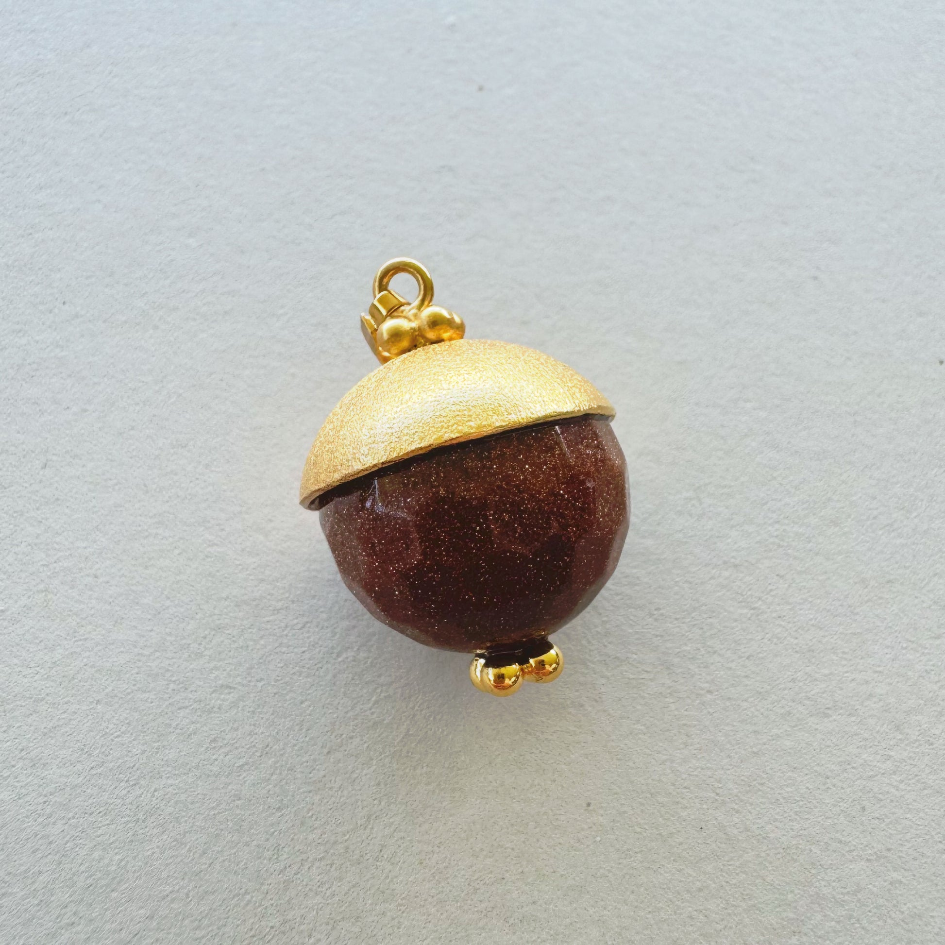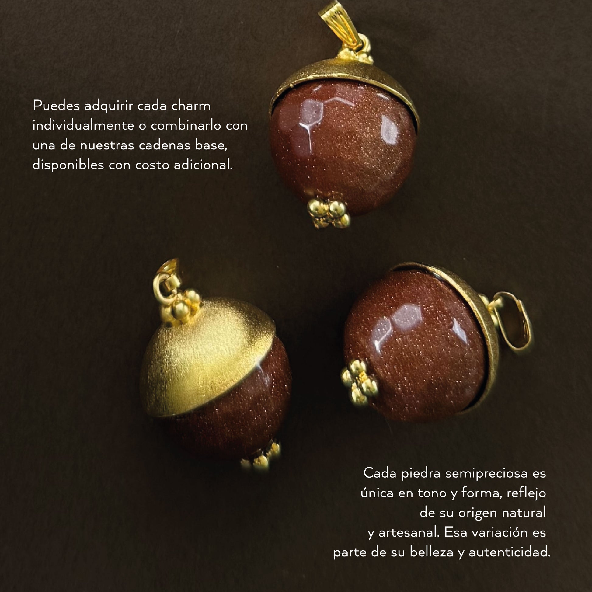 Charm de piedra Lluvia de Estrellas con herraje en bronce y baño en oro de 24k. De forma circular y textura facetada, este charm captura la luz como un pequeño universo suspendido. El herraje abraza la piedra con un diseño orgánico. Los pequeños balines soldados en la parte superior e inferior completan la pieza, aportando equilibrio y armonía visual. Su sistema de enganche permite adaptarlo fácilmente a cadenas cortas o largas, y combinarlo con otros charms para crear amuletos personalizados cargados de intención y energía. Esta piedra es conocida por su energía protectora y su conexión con los sueños y el optimismo. Inspira confianza y creatividad. Potencia la luz interior y la capacidad de manifestar deseos. Favorece la calma emocional y aleja pensamientos negativos.